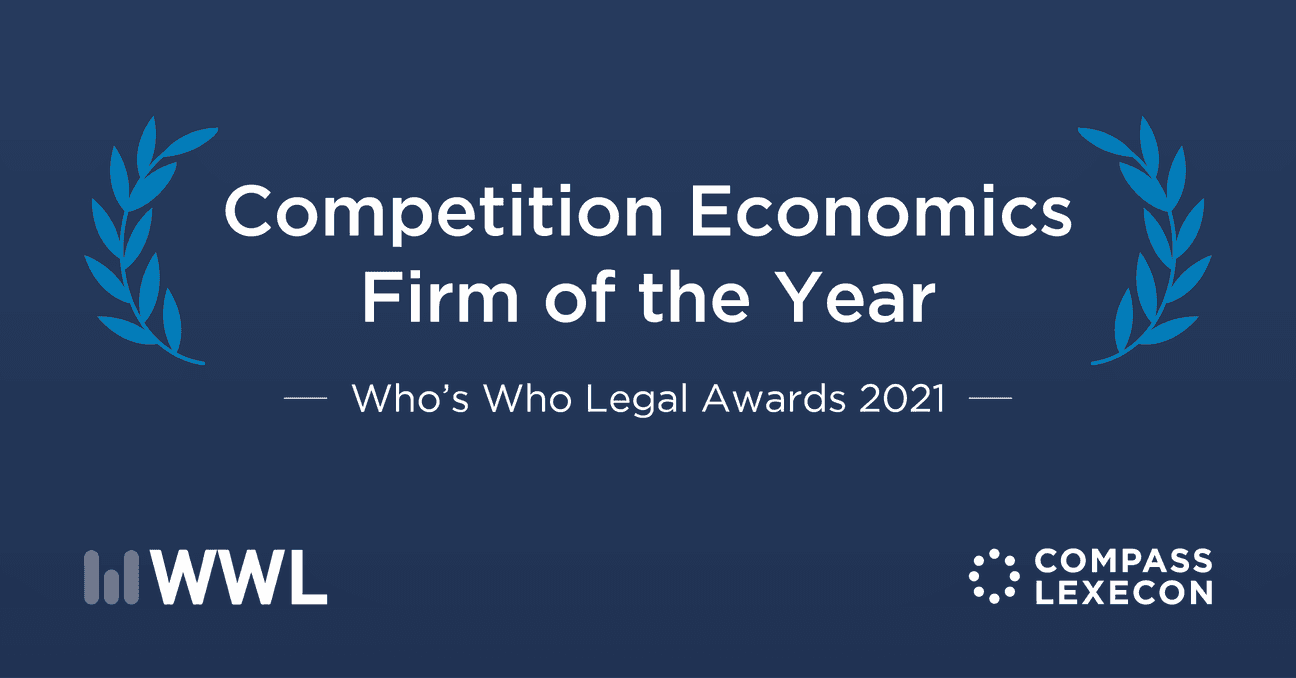 Compass Lexecon has been named Competition Economics Firm of the Year by Who’s Who Legal (“WWL”). The firm has won the award every year since its inception in 2015. This award is based on several factors, including feedback received in WWL’s independent annual market survey, past performance in the research, and the overall aggregate number of weighted votes cast by practitioners around the world.