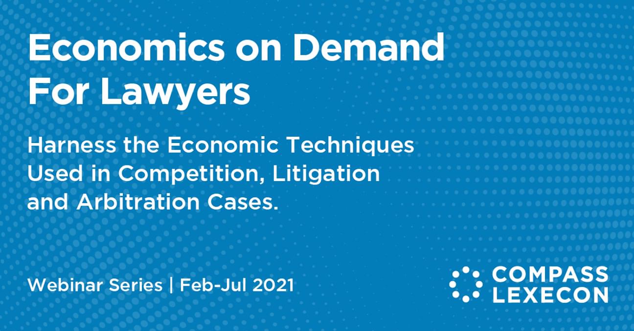 Compass Lexecon is offering a series of online seminars on a range of topics that explain how cutting-edge economic techniques are applied in the analysis of high-profile competition, litigation and arbitration cases. The Economics on Demand program aims to give you the confidence to judge and scrutinize economic arguments to help build your case.