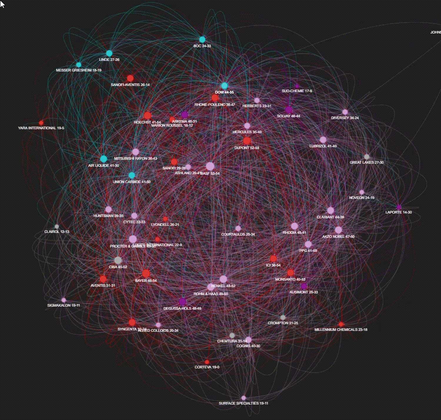 As shown in Figure 5, patenting and innovation in the Agrochem industry relies considerably on knowledge sharing, with copious citations among patents filed by different firms.
