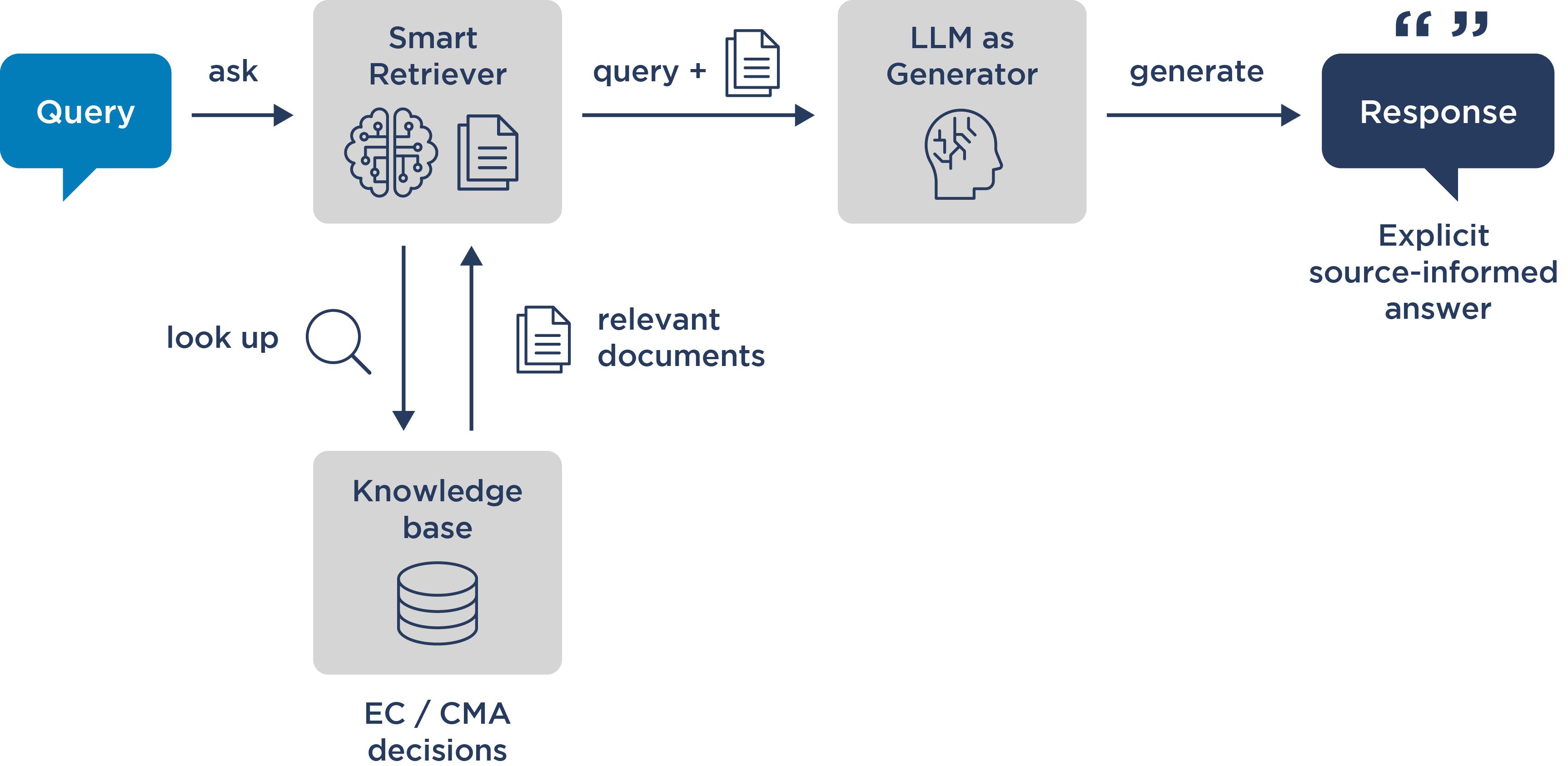 We have been integrating this feature to upgrade our Decision tool – a platform which allows users to search through EC and CMA merger decisions for specific terms or concept – with a virtual AI assistant.[9] Now, by simply asking questions to our virtual assistant, users can efficiently search through documents, summarise complex information, and pull out key information from EC/CMA decisions.