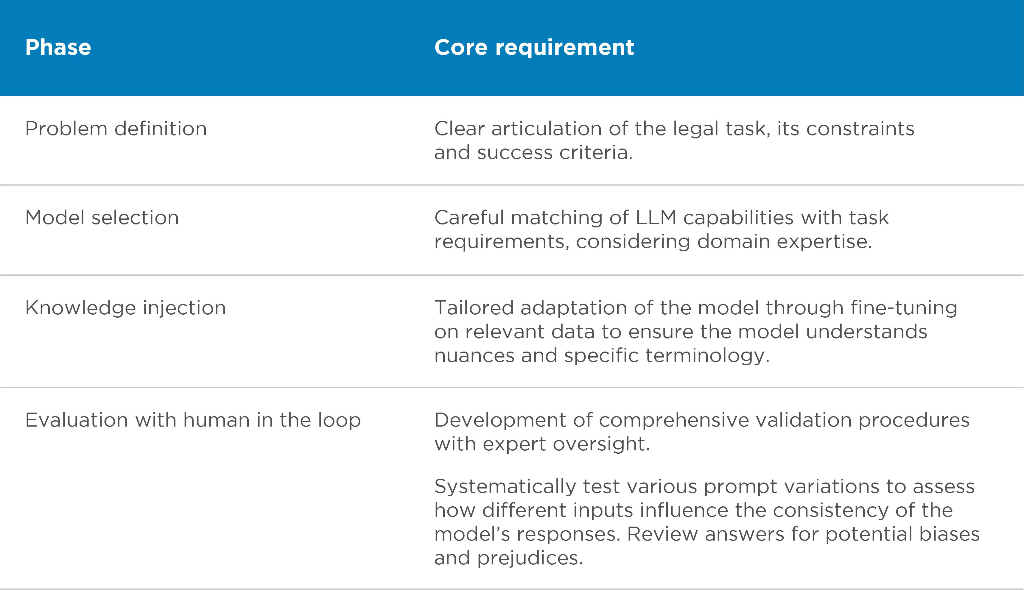 Table 1: Key phases involved in our framework (to ensure reliable LLM use in legal proceedings)