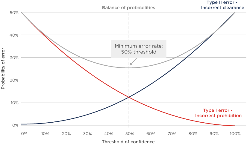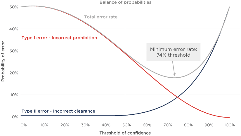The principle is that the effective threshold of confidence that the regime as a whole applies is what should matter, not each CA in isolation. When CAs wield effective vetoes, it is the regime that determines outcomes. By each CA increasing its own threshold, it takes into account the impact its effective veto has on other assessments and regime error. In essence, this approach seeks to ensure that the regime’s effective confidence threshold is roughly equivalent to the “balance of probabilities”, not each CA in isolation as it is the regime that determines outcomes.