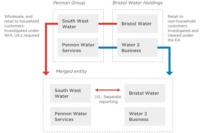The merging parties offered to provide separate reporting information for South West Water (a division of the Pennon Group) and Bristol Water, and acknowledged and agreed that Ofwat would maintain separate price controls for the wholesale water activities of South West Water and Bristol Water, an arrangement that the CMA accepted. These undertakings were designed to ensure that the comparators available to Ofwat remained unaffected, and to enable Ofwat to continue setting separate revenue controls for wholesale water for these two entities.
